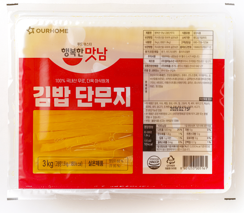 (면세)김밥단무지(고형:1.8kg) 행복한맛남