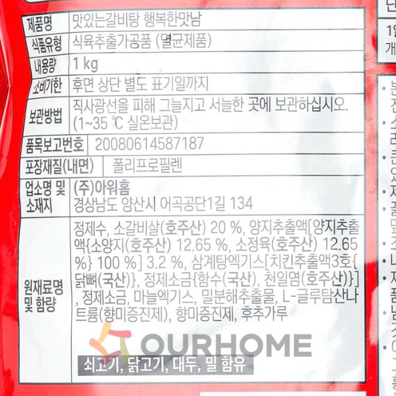 제품 정보 원산지명 원산지정보는 표시사항을 참고하여 주시기 바랍니다. 단위/규격 PK.(1kg) 보관온도 실온 HACCP 인증여부 Y 소비기한 실온 12개월 식품의 유형 식육추출가공품(멸균제품) 박스당수량 10