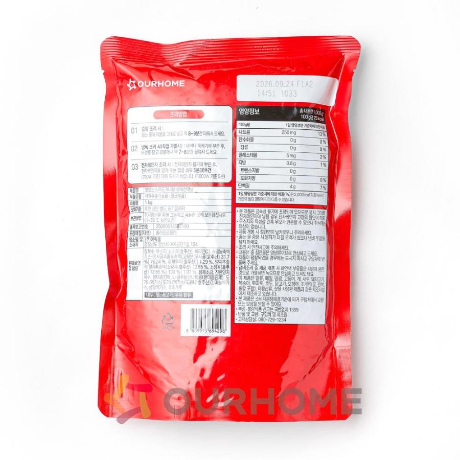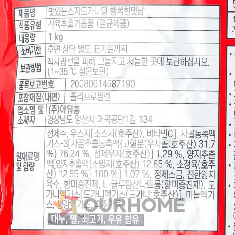 제품 정보 원산지명 원산지정보는 표시사항을 참고하여 주시기 바랍니다. 단위/규격 PK.(1kg) 보관온도 실온 HACCP 인증여부 Y 소비기한 실온 12개월 식품의 유형 식육추출가공품(멸균제품) 박스당수량 10