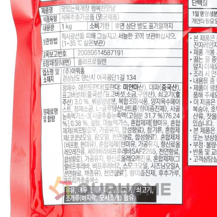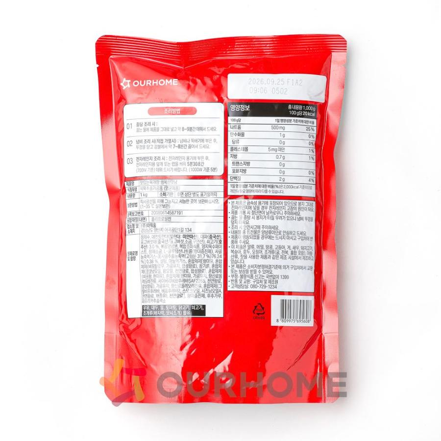 제품 정보 원산지명 원산지정보는 표시사항을 참고하여 주시기 바랍니다. 단위/규격 PK.(1kg) 보관온도 실온 HACCP 인증여부 Y 소비기한 실온 12개월 식품의 유형 식육추출가공품(멸균제품) 박스당수량 10