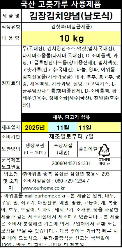 행복한맛남 김장김치양념(남도식,종이박스) 행복한맛남(상품) 무채가 들어있으며, [절임배추:양념장 = 7:3] 비율이 가장 적합 액젓함량이 높아 진하고 강한 맛의 양념 상품코드 : 41129616