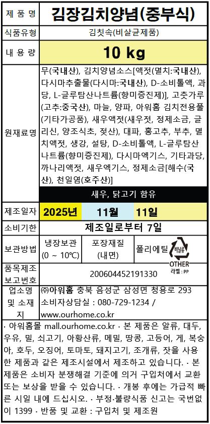 무채가 들어있으며, [절임배추:양념장 = 7:3] 비율이 가장 적합 시원하고 깔끔한 맛의 양념