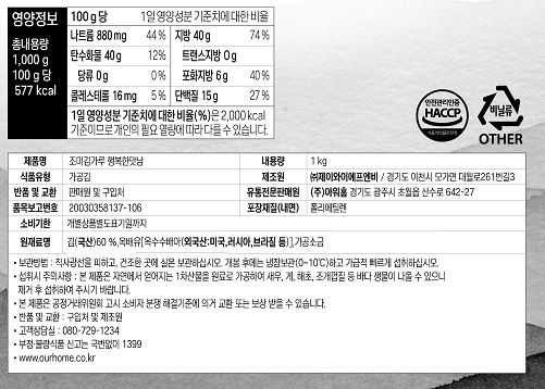 김 함량 60%의 광천·대천산 김을 사용해 더욱 고소하고 바삭한 프리미엄 조미김가루