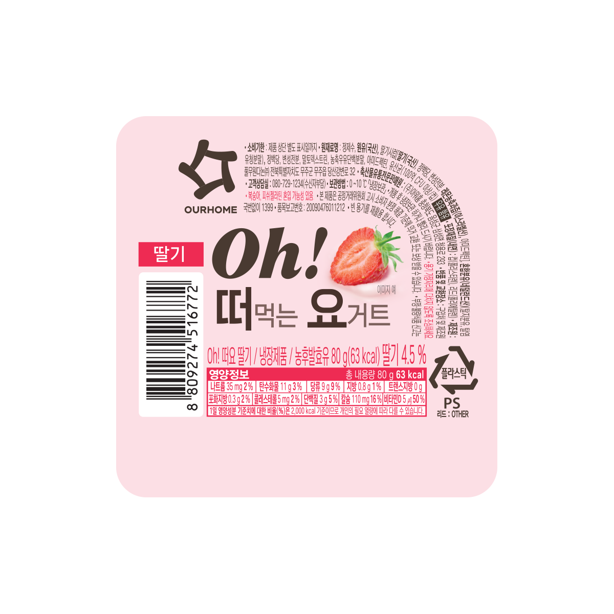 아워홈 Oh!떠요(떠먹는요거트)딸기