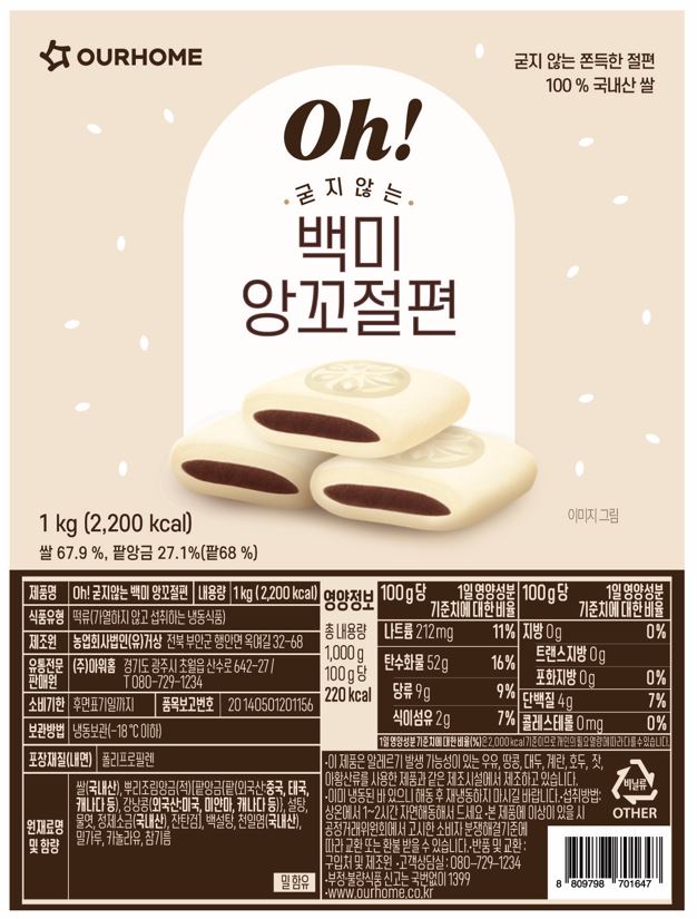 oh! 굳지않는 백미 앙꼬절편(개별) (27±1ea)