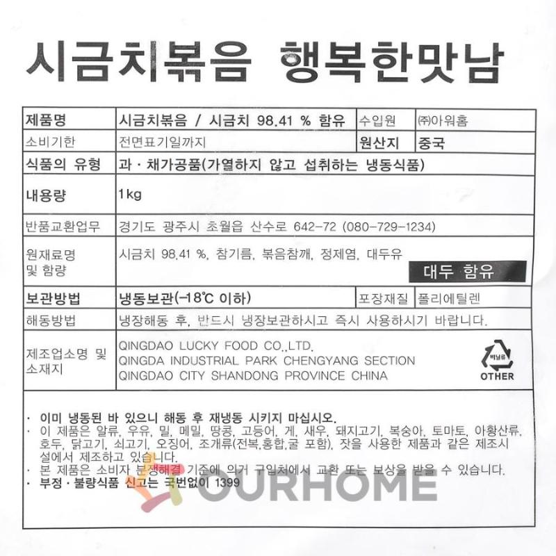 이미 냉동된 바 있으니 해동 후 재냉동 시키지 마십시오.