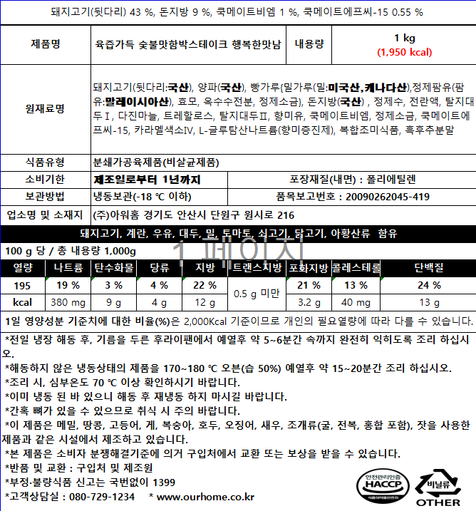 육즙가득숯불맛함박스테이크 행복한맛남